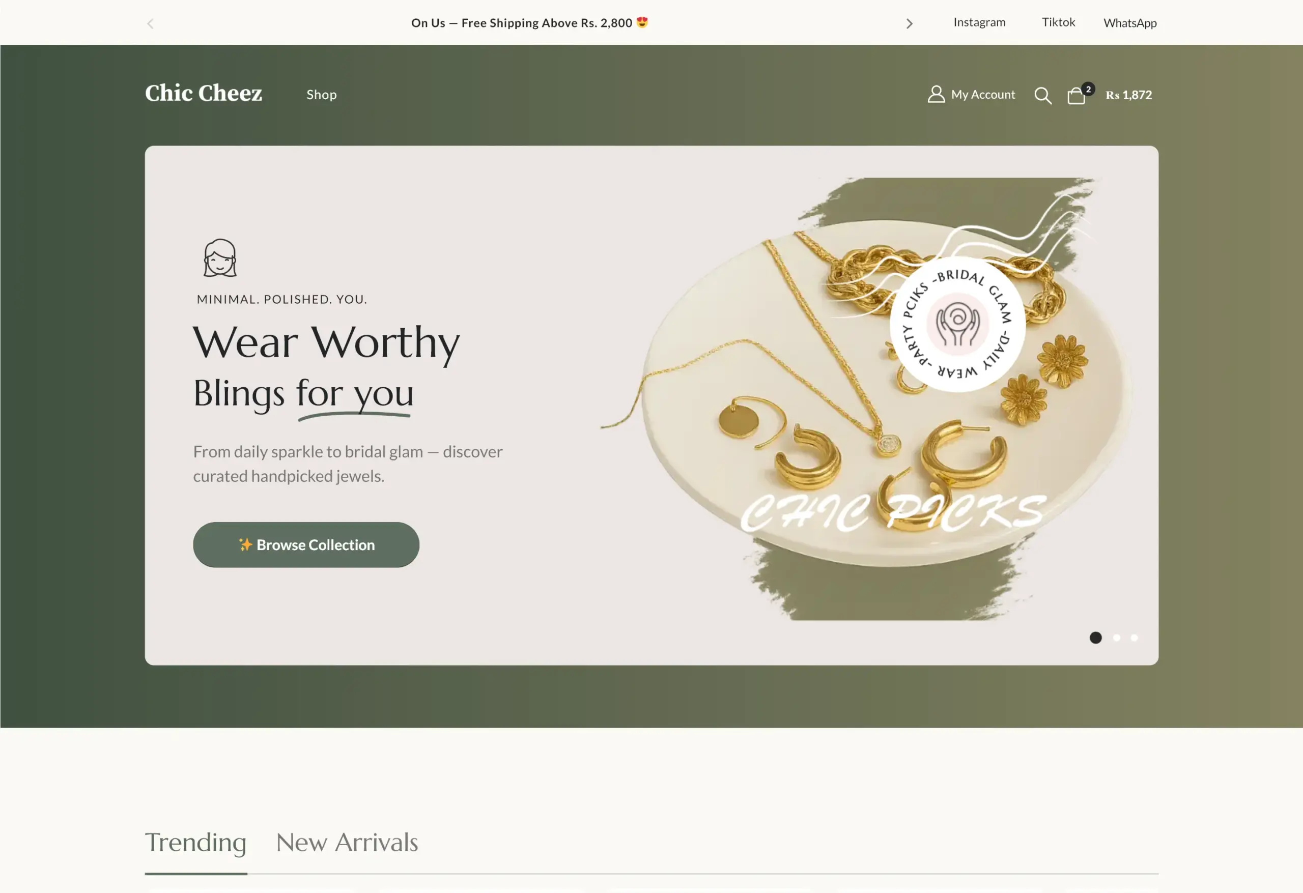 Built a fast, modern, and secure WooCommerce store for women’s accessories and jewelry, designed mobile-first for seamless shopping on any device. The project focused on conversion optimization, from intuitive product displays to smooth checkout flows. Key features included Google Sign-In, WhatsApp order confirmations for COD orders, and small advance bookings, which reduced returns from 40–50% down to 10–20%.