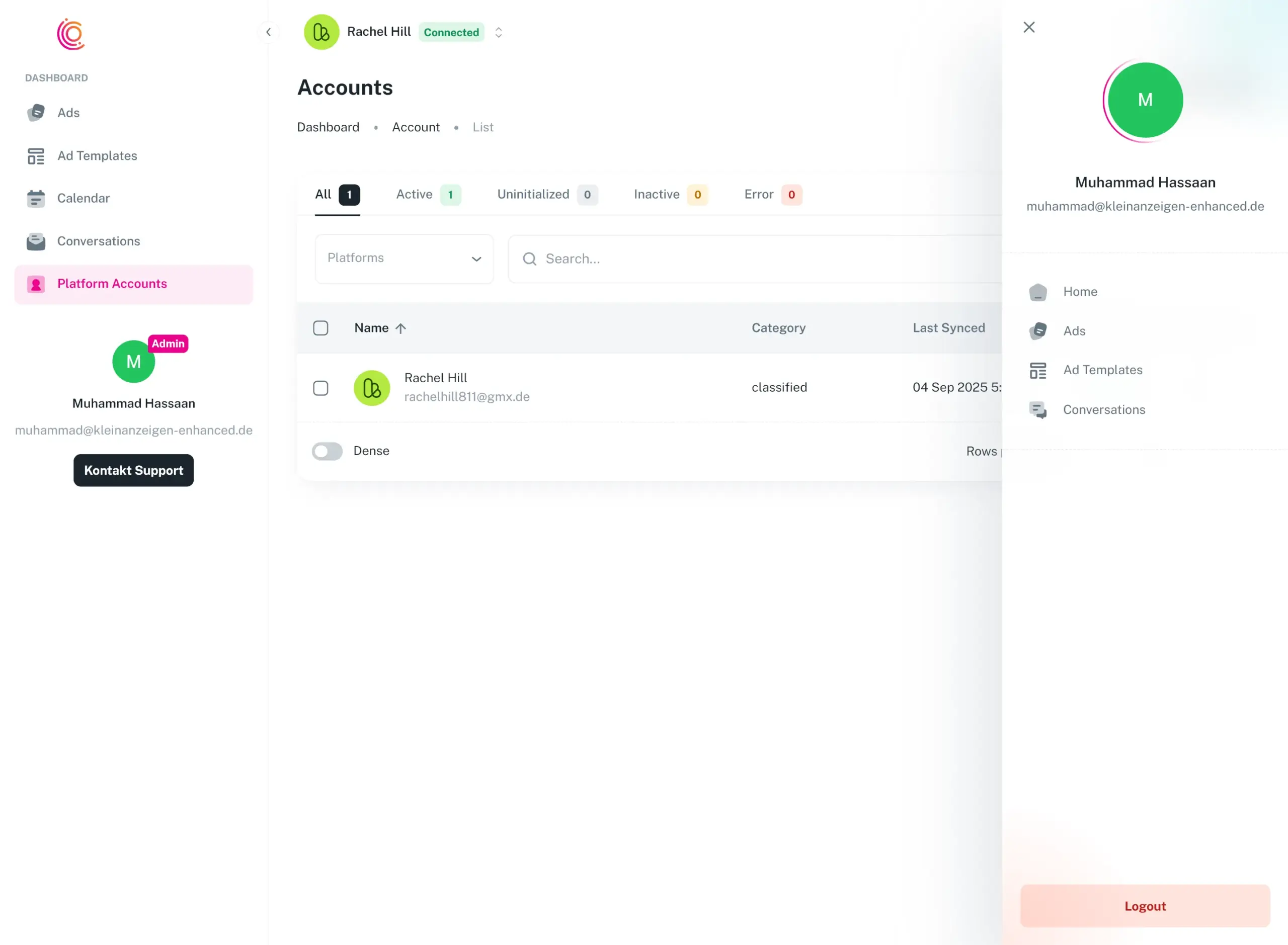 We solved this with a revolutionary approach: separating the brain from the hands. The main application—a robust, feature-rich SaaS—acted as the brain. All the complex logic for ad scheduling, rule-based auto-responses, and data management resided securely on our servers. The browser extension, meanwhile, was a lightweight, cross-browser driver built with Plasmo. It was merely the “hands” that translated the brain’s commands into user actions on the Kleinanzeigen platform.